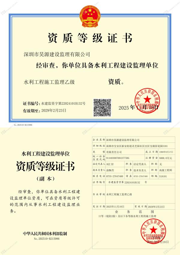 水利工程施工监理乙级资质