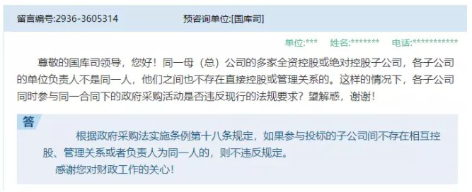 四、同一母(总)公司的多家全资控股或绝对控股子公司,各子公司的单位负责人不是同一人,他们之间也不存在直接控股或管理关系的。这样的情况下,各子公司同时参与同一合同下的政府采购活动是否违反现行的法规要求?